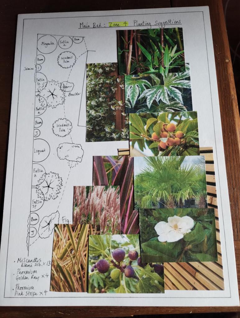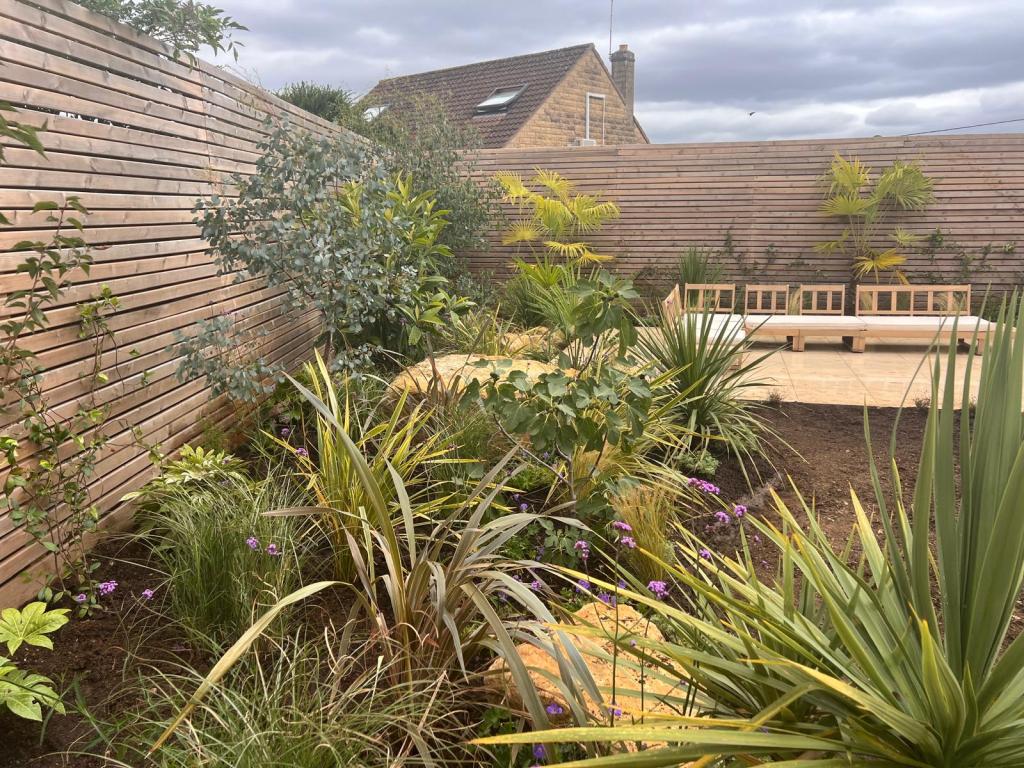 A sociable and fun loving couple wanted a planting design to surround a newly built paved area. The area was intended to entertain their large family and friends in. We discussed at length all the possibilities. But with their love of travel, we decided on a planting plan that suggested somewhere far flung and easy going, would suit the site, the house and them very well.